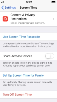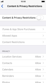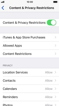 Press the indicator next to "Content & Privacy Restrictions" and follow the instructions on the screen to select settings for content and privacy restrictions.