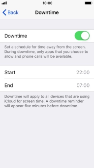 Press the indicator next to "Downtime" and follow the instructions on the screen to select Downtime period.