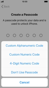 Follow the instructions on the screen to turn on use of phone lock code or press Don't Use Passcode.