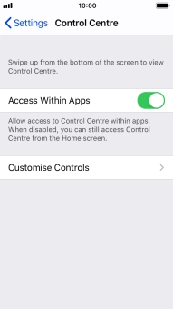 Select settings for Control Centre on your Apple iPhone SE iOS 13.1