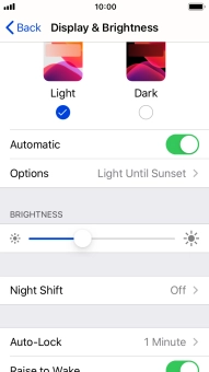 If you turn on the function, press Options and follow the instructions on the screen to select the required period of time for Dark Mode.