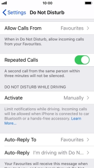 7. Select settings for Do Not Disturb While Driving