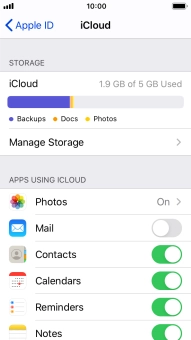 Press the indicator next to "iCloud Drive" to turn file synchronisation on or off.