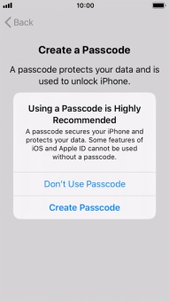 Follow the instructions on the screen to turn on use of phone lock code or press Don't Use Passcode.