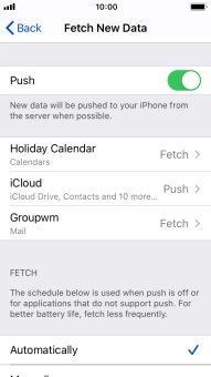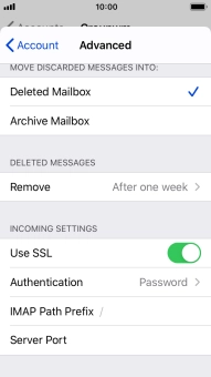 Press the required email account and follow the instructions on the screen to select settings for the specific account.