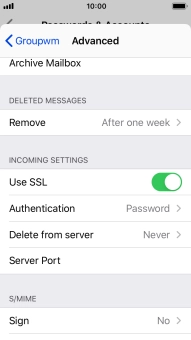 Press Password and key in the password for your email account. Please note that if you're using Vodafone's outgoing server, leave the password field empty.