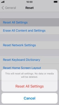 Press Reset All Settings. Wait a moment while the factory default settings are restored. Follow the instructions on the screen to set up your phone and prepare it for use.