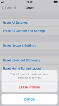 Key in the password for your Apple ID and press Erase. Wait a moment while the factory default settings are restored. Follow the instructions on the screen to set up your phone and prepare it for use.