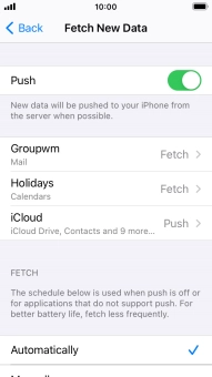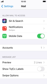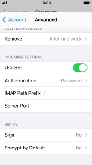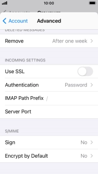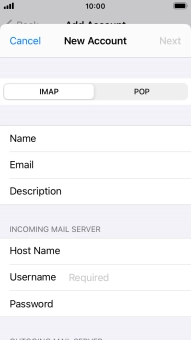 Press the required email account and follow the instructions on the screen to select settings for the specific account.