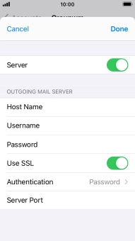 Press Password and key in the password for your email account. Please note that if you're using Vodafone's outgoing server, leave the password field empty.
