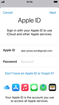 If you don t have an Apple ID, press Don't have an Apple ID or forgot it? and follow the instructions on the screen to create an Apple ID.