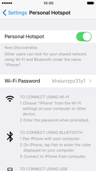 Press the indicator next to "Personal Hotspot" to turn on the function.