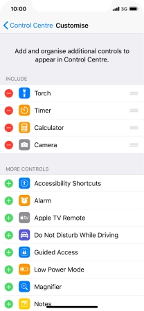 Select settings for Control Centre on your Apple iPhone X iOS 11.1