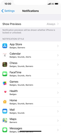 Press the indicator next to "Allow Notifications" to turn notifications for the selected application on or off.
