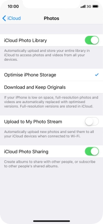 Press the indicator next to "Upload to My Photo Stream" to turn the function on or off.