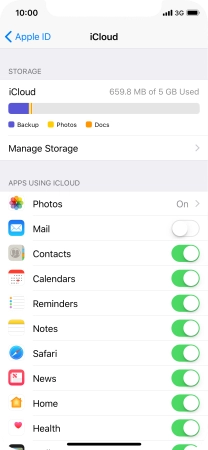 Press the indicator next to "iCloud Drive" to turn file synchronisation on or off.