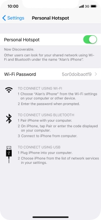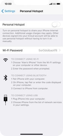 Press the indicator next to "Personal Hotspot" to turn on the function.