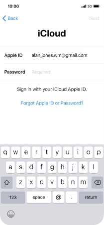 Press the field next to "Apple ID" and key in the username for your Apple ID.