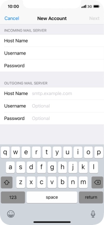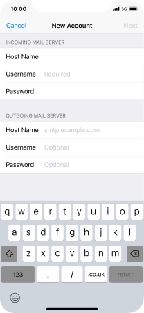 Press Host Name and key in the name or IP address of your email provider's outgoing server. Please note that if you can't send email messages when using your email provider's outgoing server, key in smtp.vodafone.net.au (Vodafone's outgoing server).