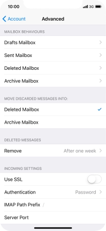 Press Password and key in the password for your email account. Please note that if you're using Vodafone's outgoing server, leave the password field empty.