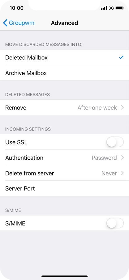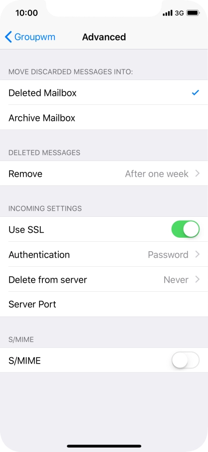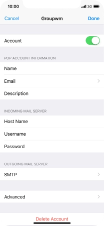 Press the required email account and follow the instructions on the screen to select settings for the specific account.