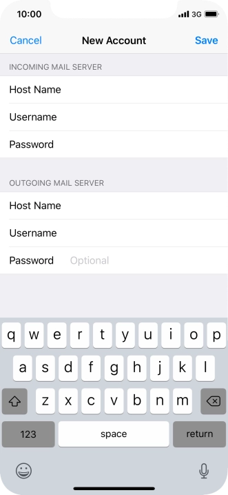 Press Host Name and key in the name of your email provider's outgoing server. Please note that if you can't send email messages when using your email provider's outgoing server, key in smtp.vodafone.net.au (Vodafone's outgoing server).