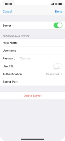 Press Password and key in the password for your email account. Please note that if you're using Vodafone's outgoing server, leave the password field empty.