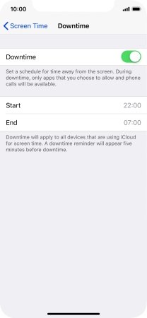 Press the indicator next to "Downtime" and follow the instructions on the screen to select Downtime period.