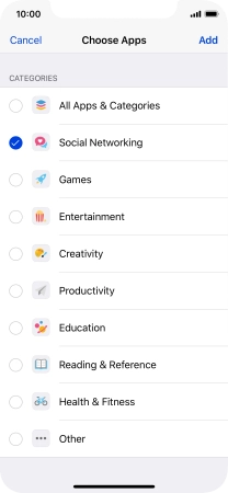 Press the add icon next to the required app to add it to the list of allowed apps during Downtime.