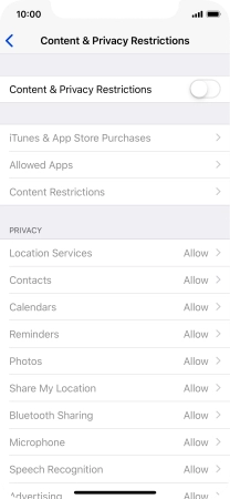 Press the indicator next to "Content & Privacy Restrictions" and follow the instructions on the screen to select settings for content and privacy restrictions.