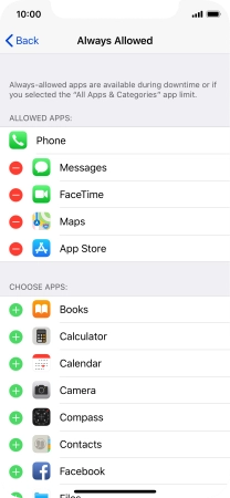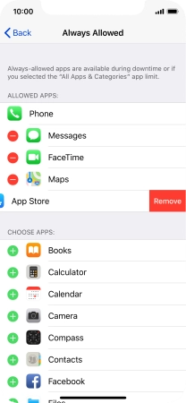 Press the remove icon next to the required app to remove it from the list of allowed apps during Downtime.