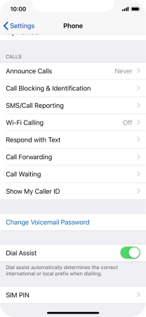 Press the indicator next to "SIM PIN" to turn the function on or off.