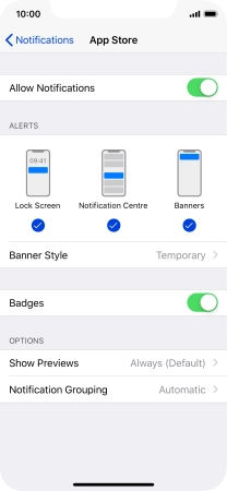 Press the indicator next to "Allow Notifications" to turn notifications for the selected application on or off.