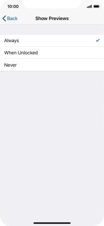 To select notification preview only when your phone is unlocked, press When Unlocked.