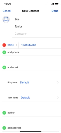 Follow the instructions on the screen to add more information such as an email address and a personal ring tone.