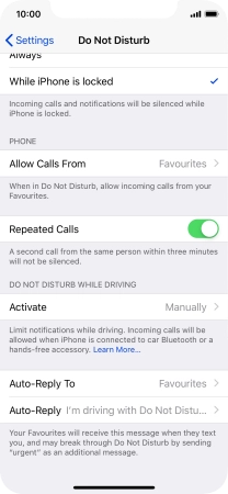 Press the required setting to select which contacts should automatically be notified that Do Not Disturb While Driving is turned on.