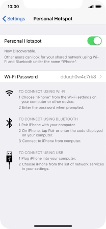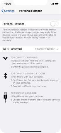 Press the indicator next to "Personal Hotspot" to turn on the function.