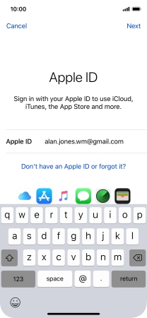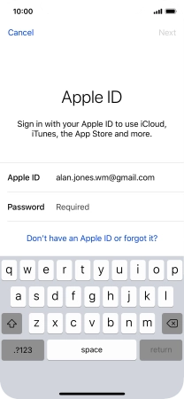 If you don t have an Apple ID, press Don't have an Apple ID or forgot it? and follow the instructions on the screen to create an Apple ID.