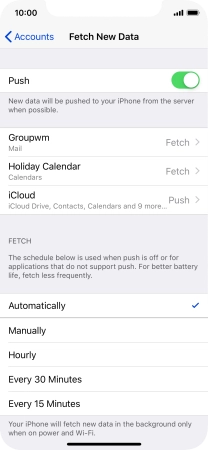 Press the required email account and follow the instructions on the screen to select settings for the specific account.