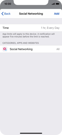 Press the add icon next to the required app to add it to the list of allowed apps during Downtime.