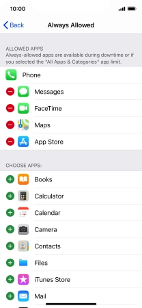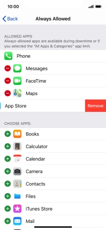 Press the remove icon next to the required app to remove it from the list of allowed apps during Downtime.