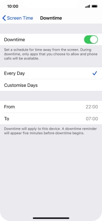 Press the indicator next to "Downtime" and follow the instructions on the screen to select Downtime period.