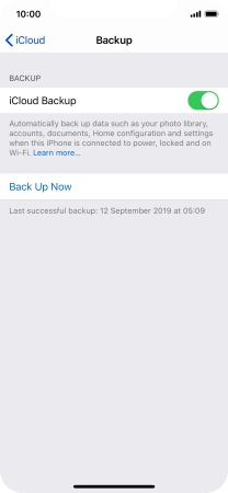 Back up the memory on your Apple iPhone X iOS 13.0 to iCloud