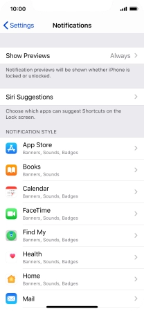 Press the indicator next to "Allow Notifications" to turn notifications for the selected application on or off.