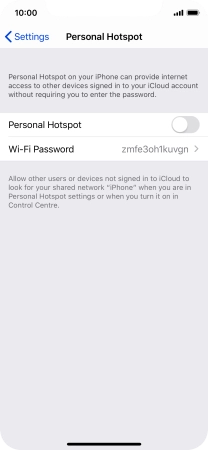 Press the indicator next to "Personal Hotspot" to turn on the function.