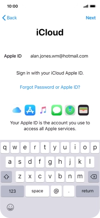 Press the field next to "Apple ID" and key in the username for your Apple ID.