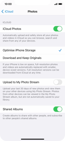 Press the indicator next to "Upload to My Photo Stream" to turn the function on or off.