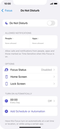 Press Add Schedule or Automation and follow the instructions on the screen to select settings for automatic activation of Do Not Disturb.