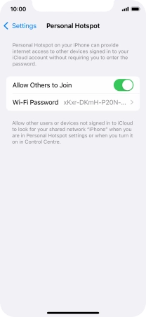2. Key in the password for personal hotspot