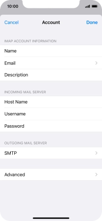 Press Host Name and key in the name or IP address of your email provider's outgoing server. Please note that if you can't send email messages when using your email provider's outgoing server, key in smtp.vodafone.net.au (Vodafone's outgoing server).